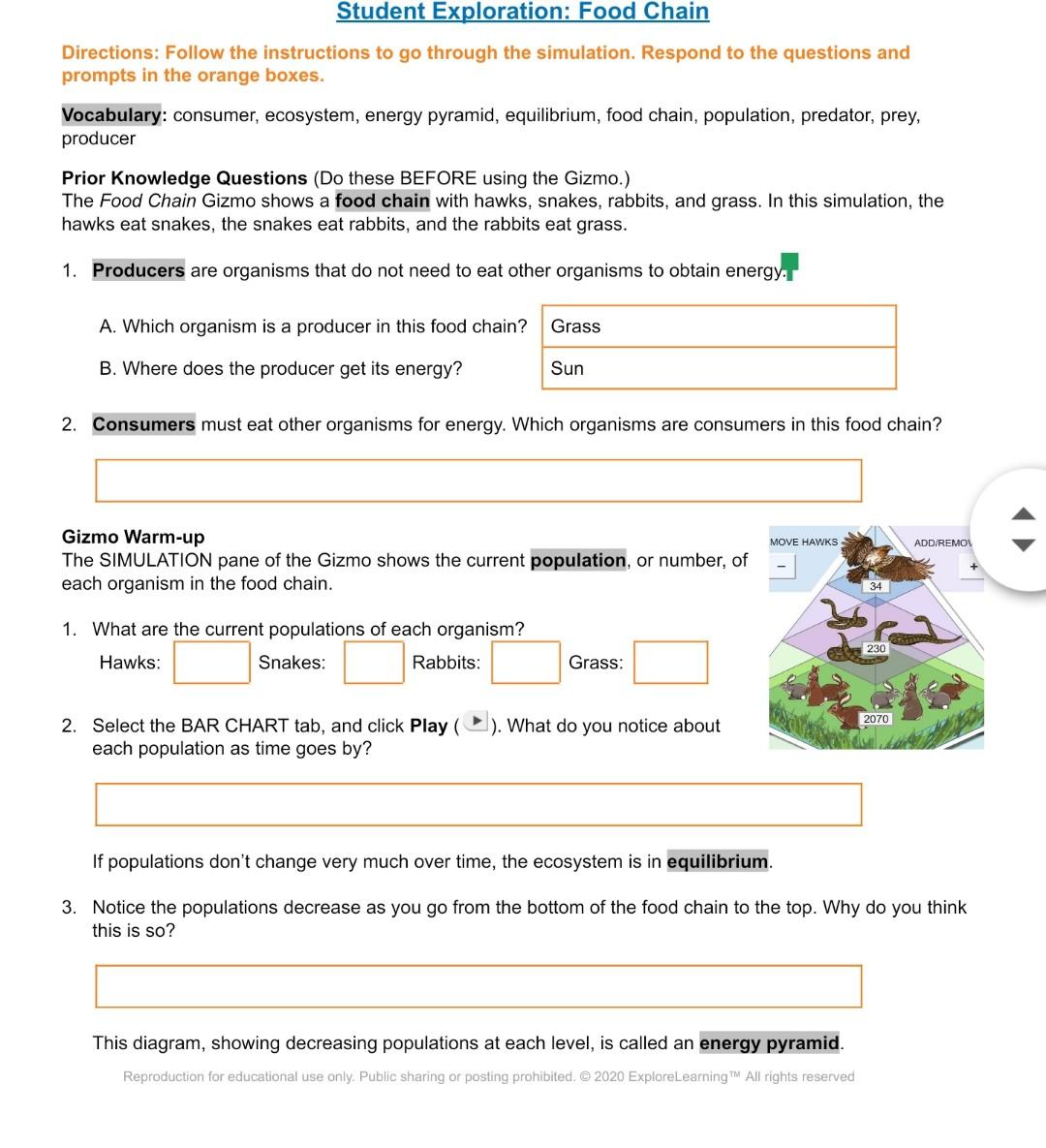 Student exploration food chain gizmo answer key. Check spelling or type a new query. Maybe you would like to learn more about one of these? We did not find results for: